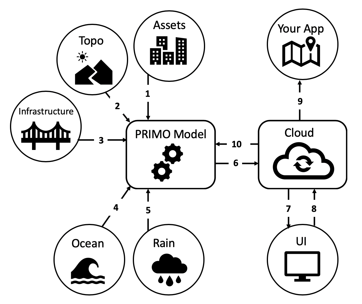 - The PRIMO model produces predictions of flooding depth, extent, elevation, and forces at your locations